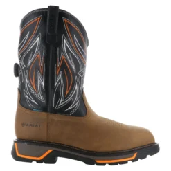 The Big Rig from Ariat is built with extended sizes and widths for a generous fit, roomier opening, and deeper scallop to accommodate high insteps and wider calves. This Big Rig BOA features a waterproof construction and EH ratings to keep you protected and comfortable. The BOA® Fit System on this boot delivers dialed in performance and micro-adjustable precision fit. For a better fit and a secure instep, push in to engage, turn dial to tighten, pull out to release.Â