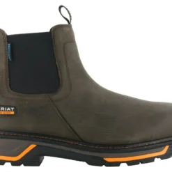 Ariat’s Big Rig Chelsea Waterproof Soft Toe Boot features ATS® technology to provide you with ergonomic support on uneven terrain. The DRYShieldâ„¢ waterproof construction keeps your feet dry while the durable oil- and slip-resistant Duratreadâ„¢ sole keeps you steady. Comfort features include a removable Energy Maxâ„¢ anti-fatigue insole for maximum comfort and a Goodyear welt construction outsole accented by a flared outsole design with debris-releasing tread. The elastic twin gore entry and back pull tab deliver a roomier opening and deeper scallop to accommodate high insteps and wider calves. This slip on soft toe boot is sure to meet all your expectations.
