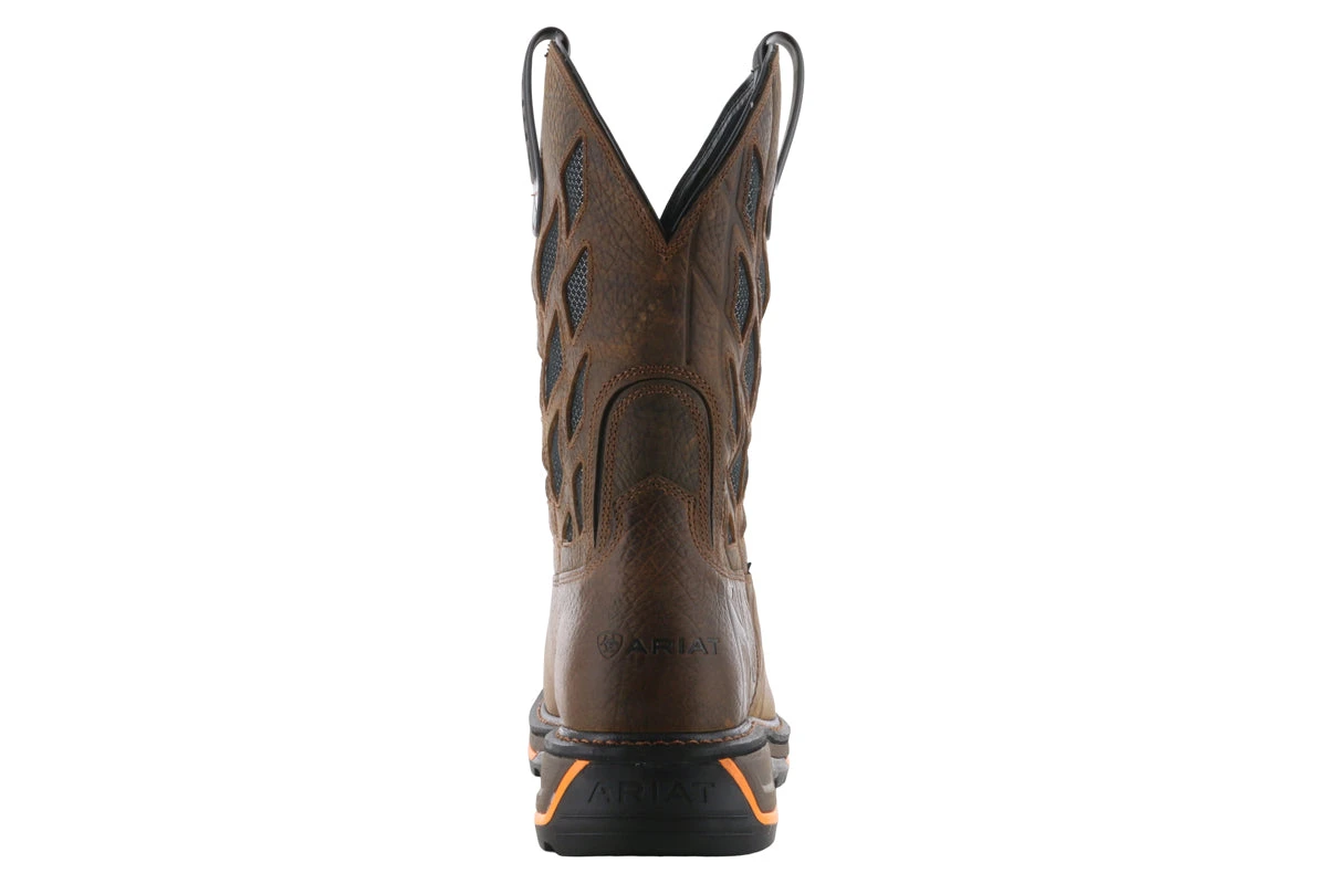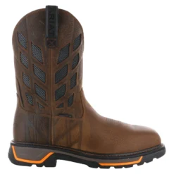 The Big Rig from Ariat is built with extended sizes and widths for a generous fit, roomier opening, and deeper scallop to accommodate high insteps and wider calves. The Big Rig Venttek Composite Toe edition features a full-grain leather upper with VentTEKâ„¢ mesh panels to allow for air flow. The breathable panels pair well with the hight tech Dri-Freezeâ„¢ lining in the foot and upper which helps regulate the temperature inside the lining of the boot to keep you dry, cool and comfortable. The Energy Maxâ„¢ rebound foam insole provides superior comfort while the flared outsole design with debris-releasing tread gives you a stable base. The U-Turn® Entry System allows anyone with high arches to easily slip on these boots.Â