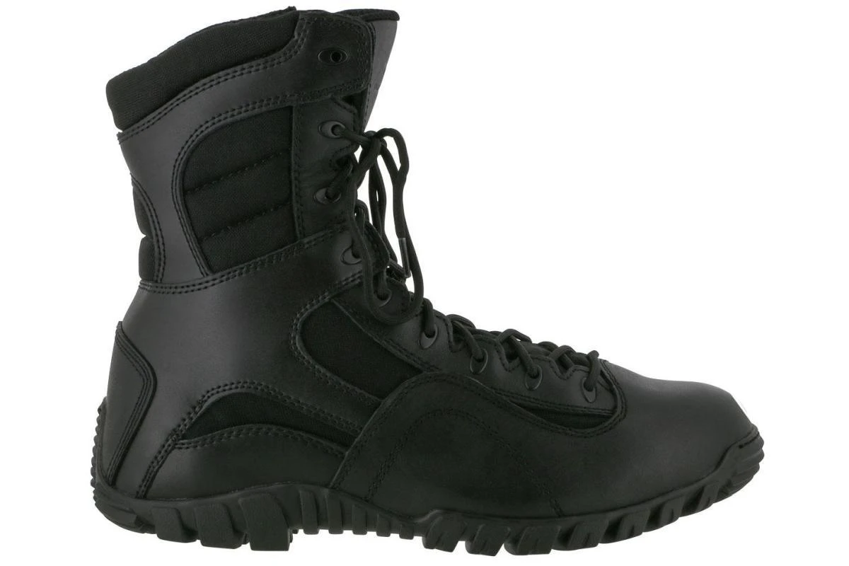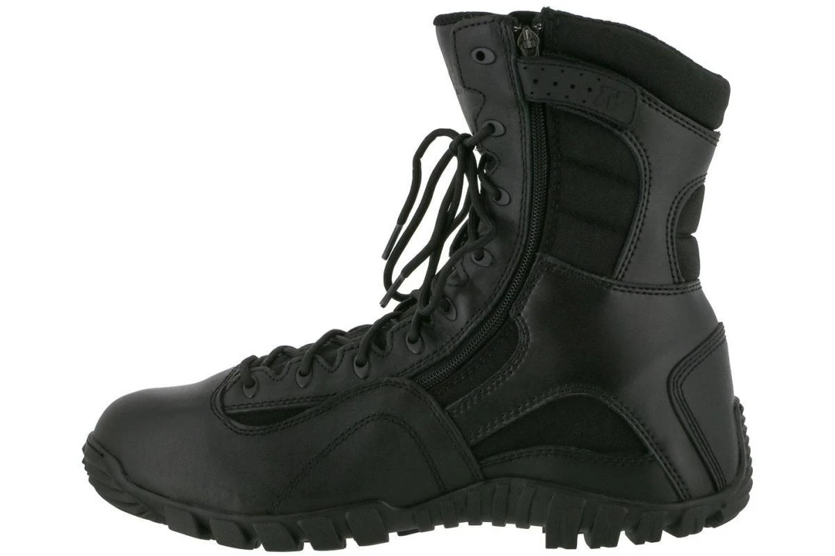 The Khyber from Belleville is an 8″ high hot weather, side-zip, tactical boot composed of 100% cattlehide leather and nylon fabric. The VIBRAM® outsole, cushioned midsole, and molded, removable insole work together to protect your feet while you protect your citizens.