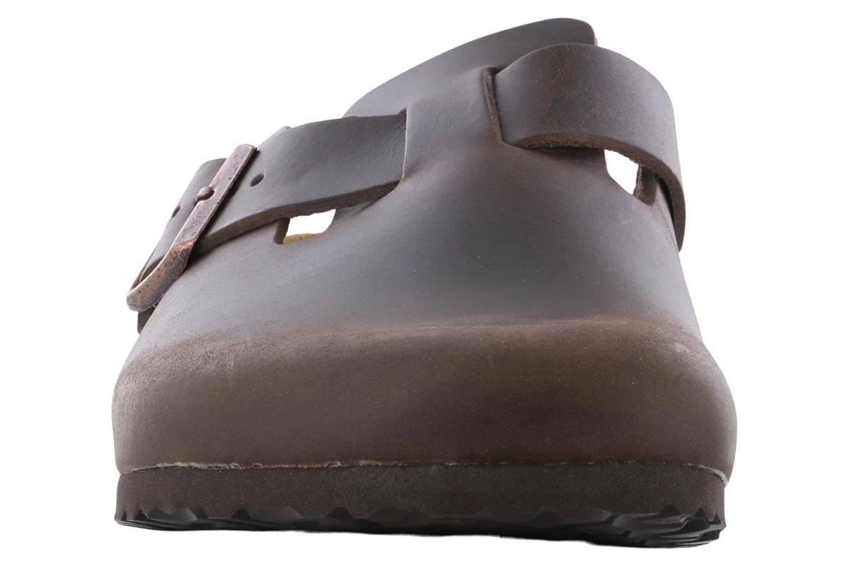The Birkenstock Boston is a slip-on classic that can be worn year round. The Boston is made from extra thick, oiled Habana leather. The anatomically shaped cork-latex footbed conforms to the shape of your feet over time while providing arch support, a heel cup, and a roomy toe box.