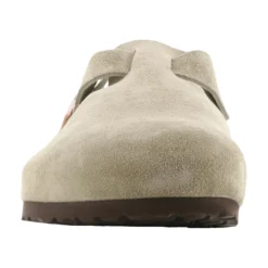 The Birkenstock Boston is a slip-on classic that can be worn year round. This Boston upper is made with taupe suede leather from thick and supple leathers without additional dyes so the leather remains breathable, durable and comfortable. The cushioned soft footbed has an integrated latex foam cushion and creates custom support with wear as well as excellent comfort right out of the box.