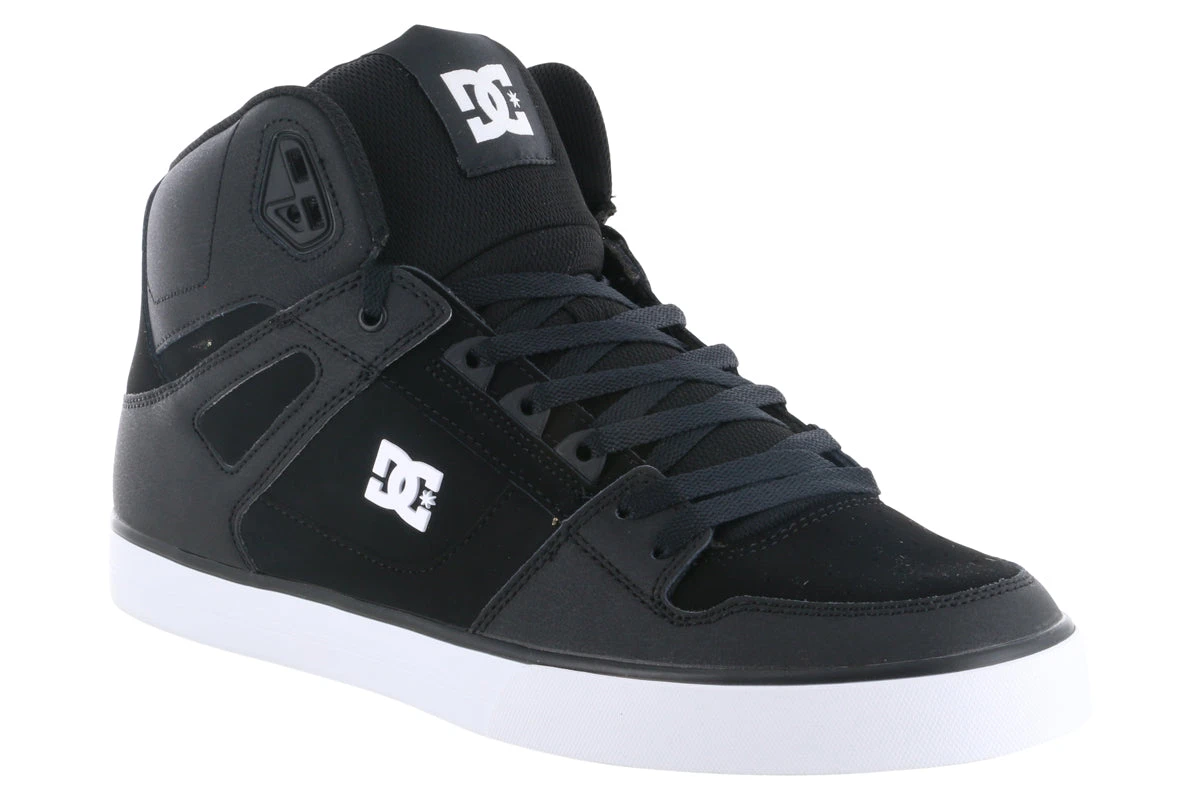DC Shoes was founded in 1994 and specializes in footwear for action sports. These stylish all black high-top sneakers are available up to size 18 in medium (D) widths.Â