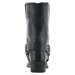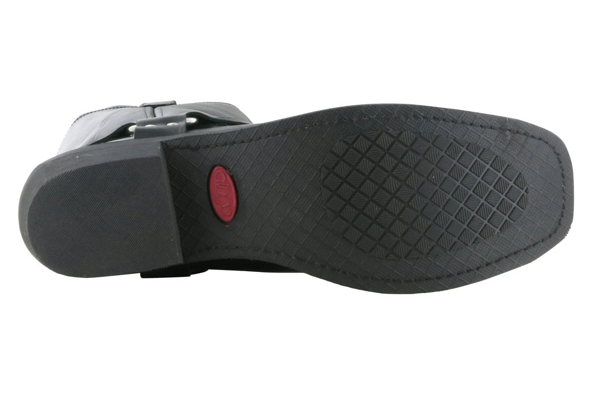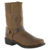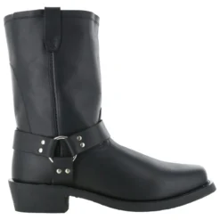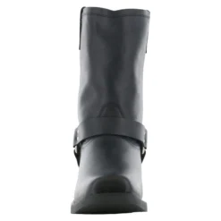 The Dean is a high-performance wellington boot with genuine leather construction from top to bottom. The classic snoot toe, leather harness and brass ring styling make this boot the ideal choice for all your motorcycle rides. The cushioned comfort insole and soft lining keep you comfortable while the oil and heat resistant rubber outsole keep you protected. The Dean Harness Boot is about 11″ tall with an entry circumference of approximately 13″ (varies by size).Â