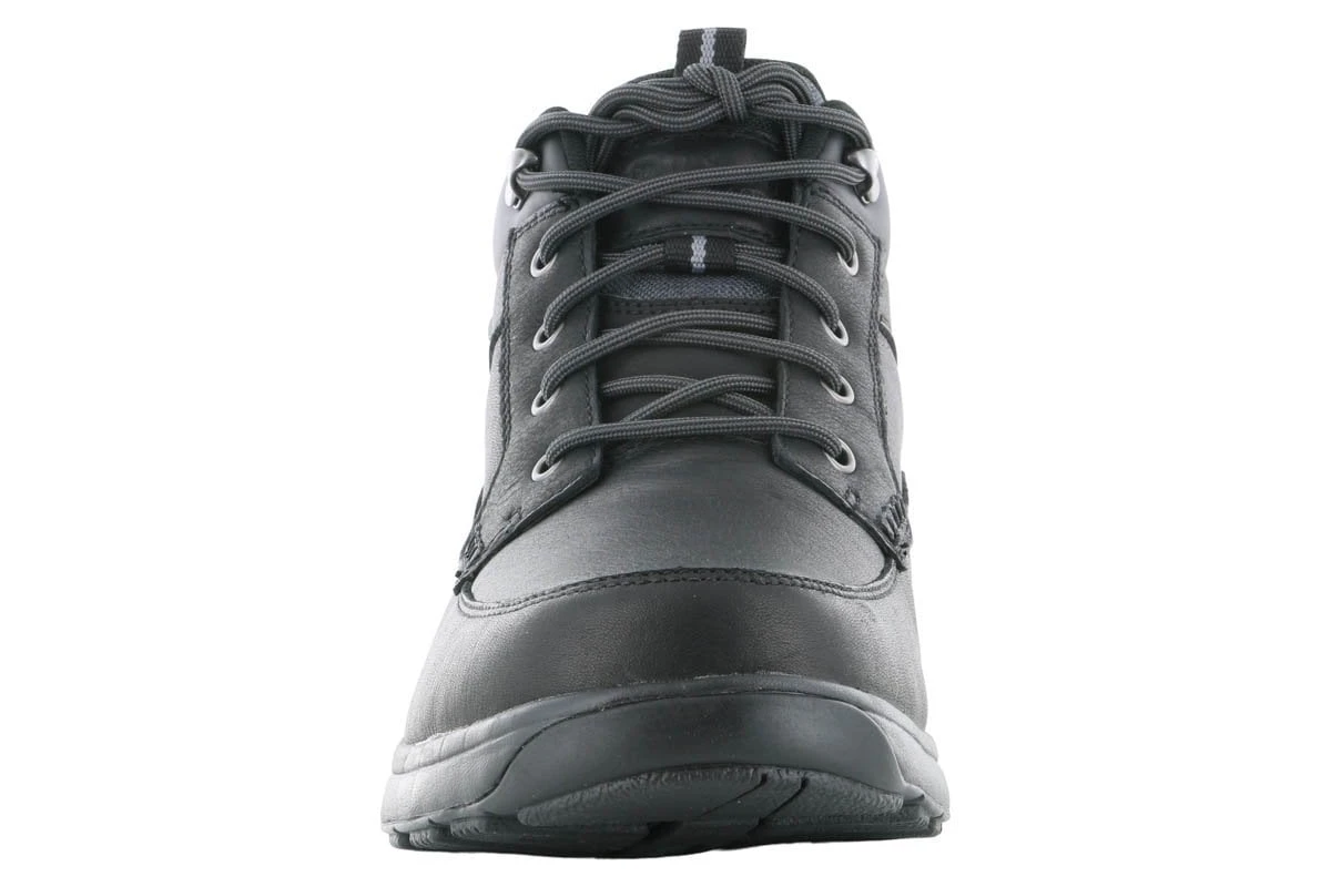 The Dunham 8000 mid boot is a classic and timeless style that can be dressed up or down. The full grain black leather upper features seam-sealed waterproof construction and an adjustable lace closure with a padded collar and tongue.
