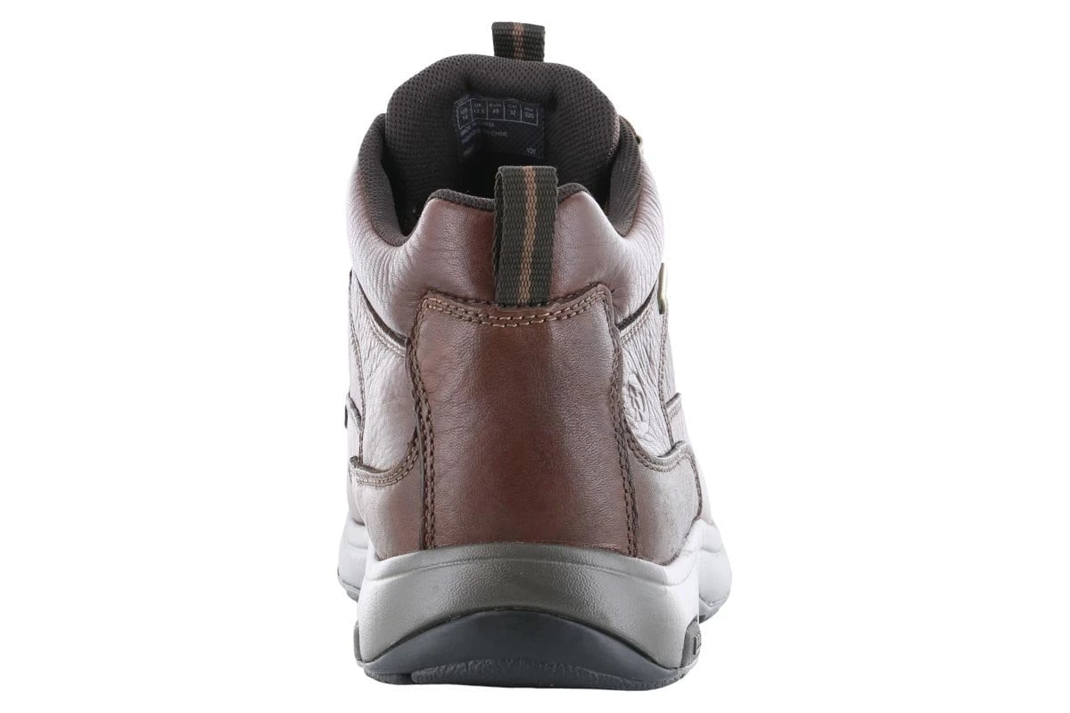 The Dunham 8000 mid boot is a classic and timeless style that can be dressed up or down. The dark brown leather upper features seam-sealed waterproof construction and an adjustable lace closure with a padded collar and tongue.