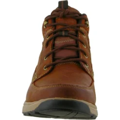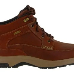 The Dunham 8000 mid boot is a classic and timeless style that can be dressed up or down. The tan leather upper features seam-sealed waterproof construction and an adjustable lace closure with a padded collar and tongue.