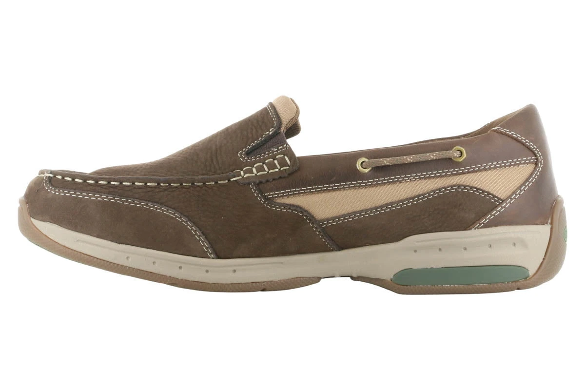 The Dunham Captain Venetian has comfort and support features including a nylon stability shank, textile lining, removable molded EVA and memory foam footbed, and a lightweight EVA midsole. This casual, nautically inspired boat shoe has a non-marking rubber outsole that is siped to channel water.