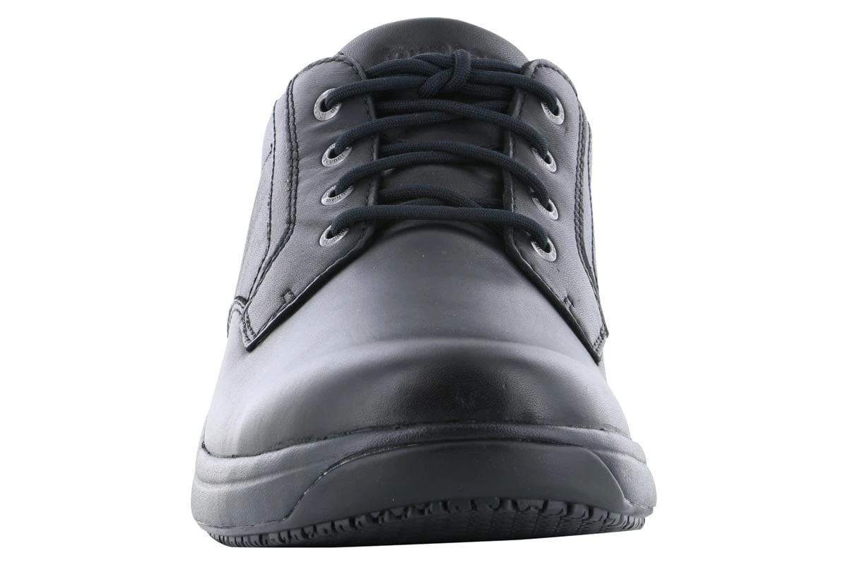 The Dunham Service WP Plain Toe is a classic oxford style that has been transformed into the perfect service shoe. This shoe is slip resistant, meeting ASTM F2913-11 standards for wet, dry, oil, and oil/wet conditions. The easy-care leather upper is oil-resistant and waterproof making this shoe a great choice for any work environment requiring slip resistant footwear. The lace-up oxford styling helps to ensure a great fit to last you through your work day.