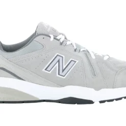 The 608V5Â grey suede leather trainer features super soft cushioning with a durable rubber outsole to give you the comfort and support you need. The newest generation of this classic trainer from New Balance is available up to size 18 4E. The suede and mesh upper delivers a snug fit with breathable comfort.
