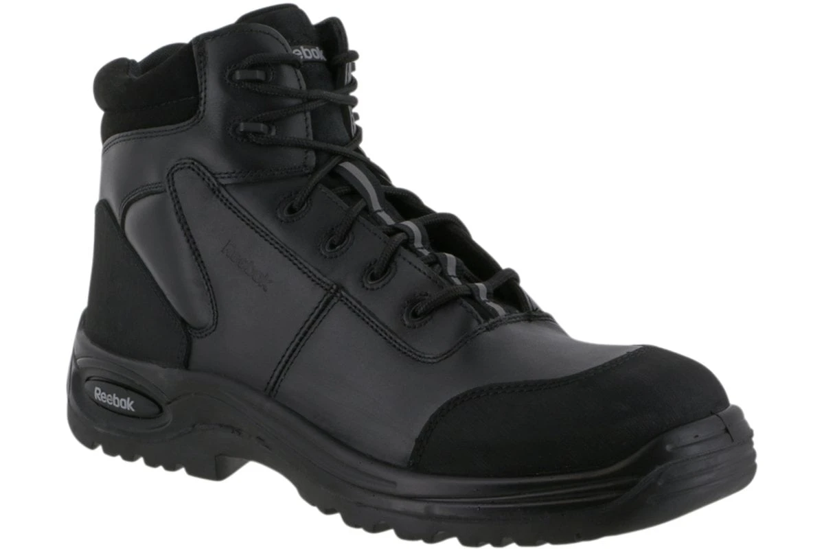 The Reebok Work sport boot hiker is completely airport friendly with a composite toe and non-metallic shank for safety. This boot features Aircomâ„¢ Athletic Air Comfort Technology inside the heel to offer unmatched impact resistance and walking comfort.