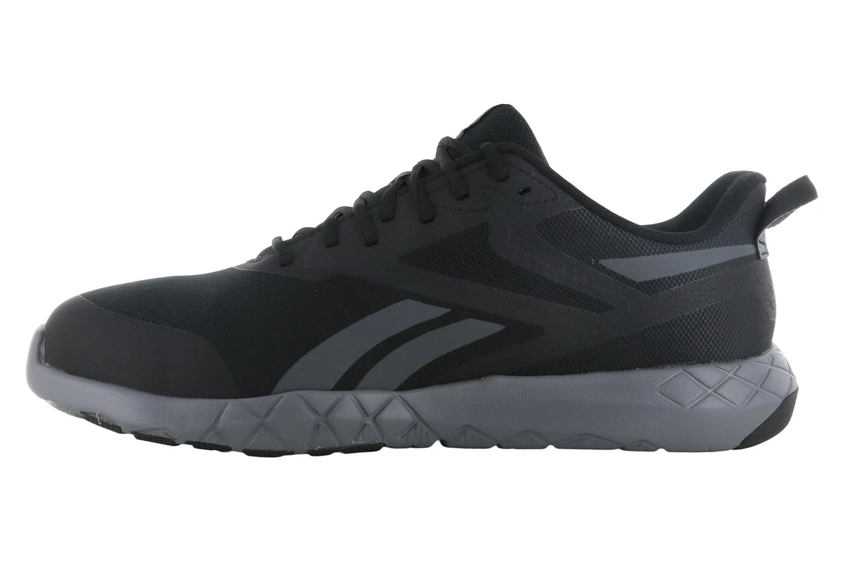 The Reebok Work Flexagon Force is a comfortable composite toe work shoe made for big and wide feet. This work shoe provides the ultimate protection with an XTR® Brand composite safety toe that provides extra room and comfort. The XTR® composite toe cap is lightweight and will not conduct heat, cold, or electricity. It meets or exceeds the ASTM F2413 standard for protective footwear.
