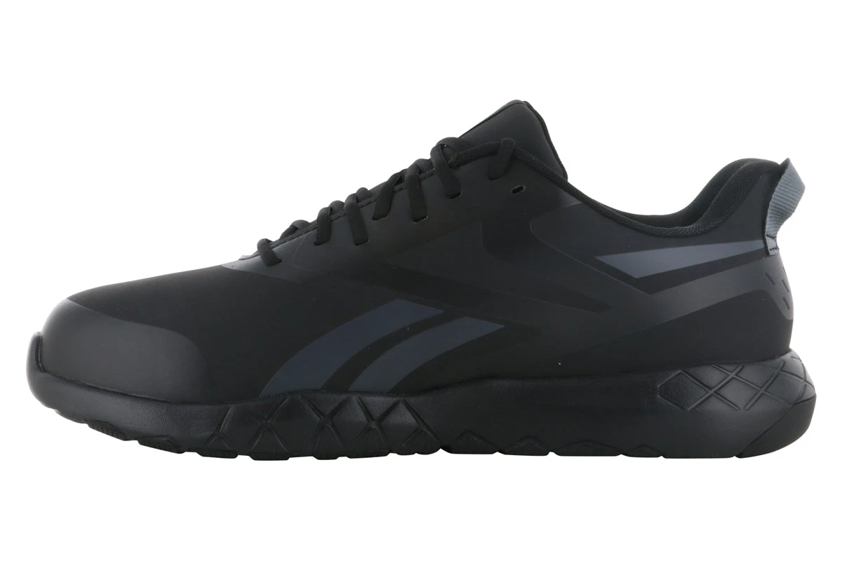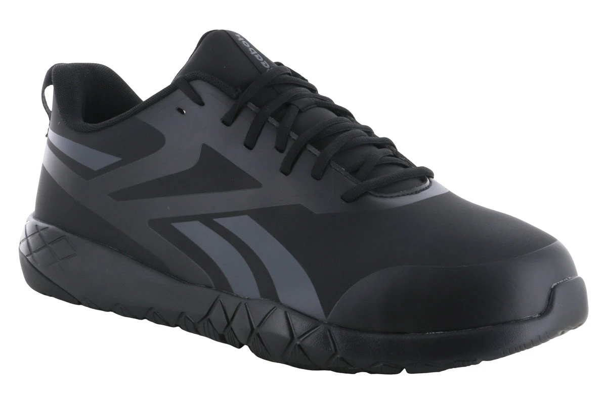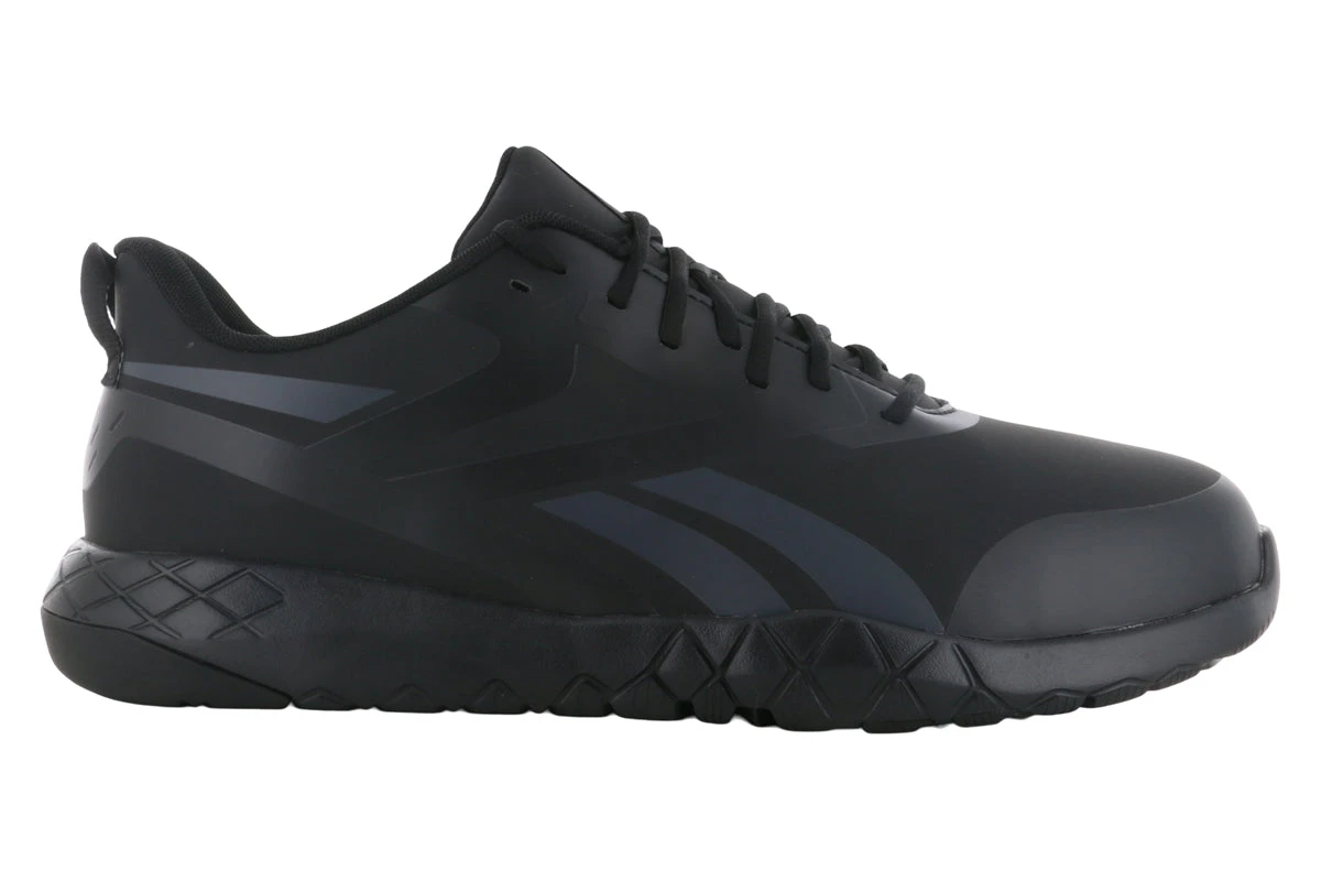 The Reebok Work Flexagon Force is a comfortable composite toe work shoe made for big and wide feet. This work shoe provides the ultimate protection with an XTR® Brand composite safety toe that provides extra room and comfort. The XTR® composite toe cap is lightweight and will not conduct heat, cold, or electricity. It meets or exceeds the ASTM F2413 standard for protective footwear.
