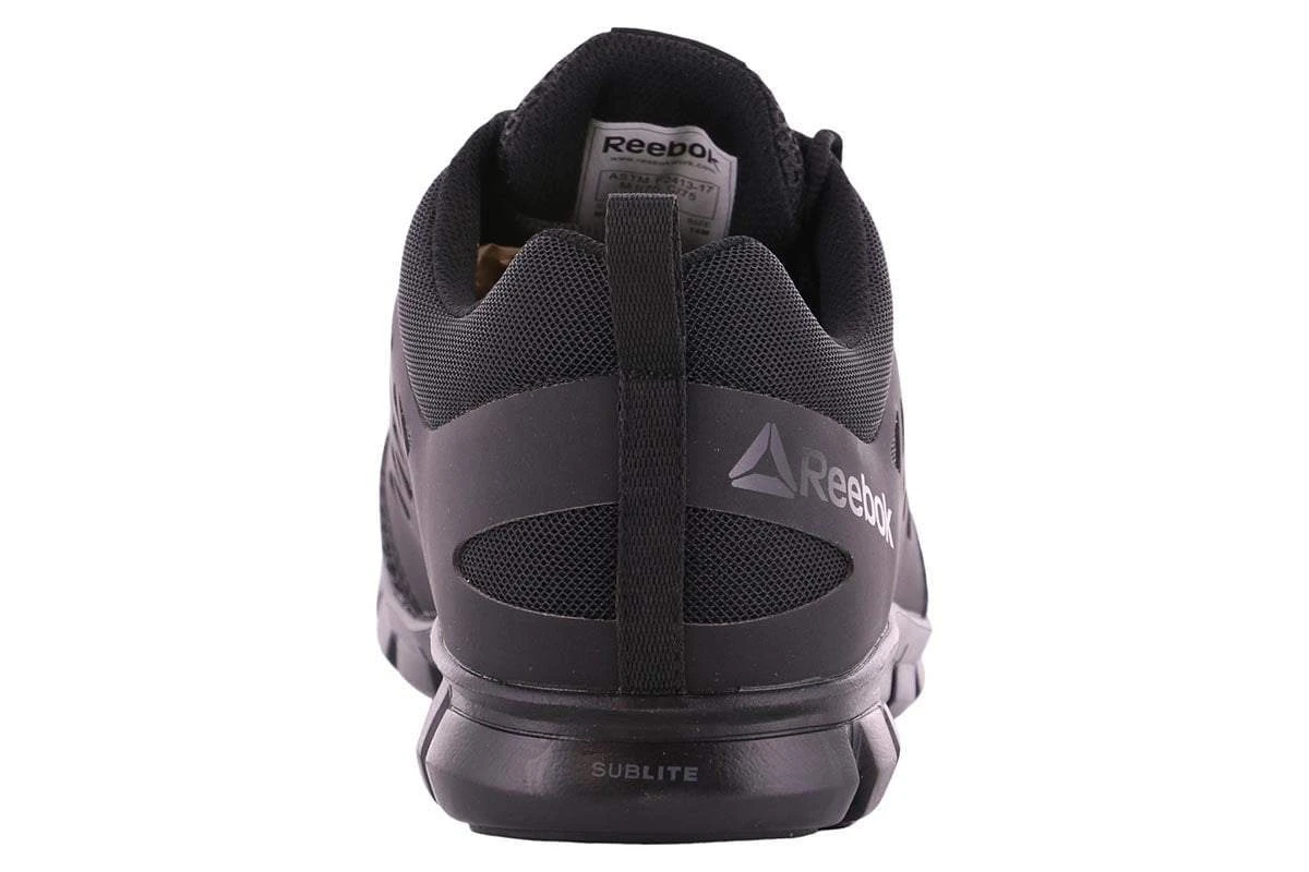 This Reebok Sublite Safety Toe shoe is a cushioned, static dissipative, athletic work oxford with a wide toe box. With an upper composed of mesh and webbing, this safety shoe will not only keep your toes protected at work, but it will amaze you with how lightweight it is.Â