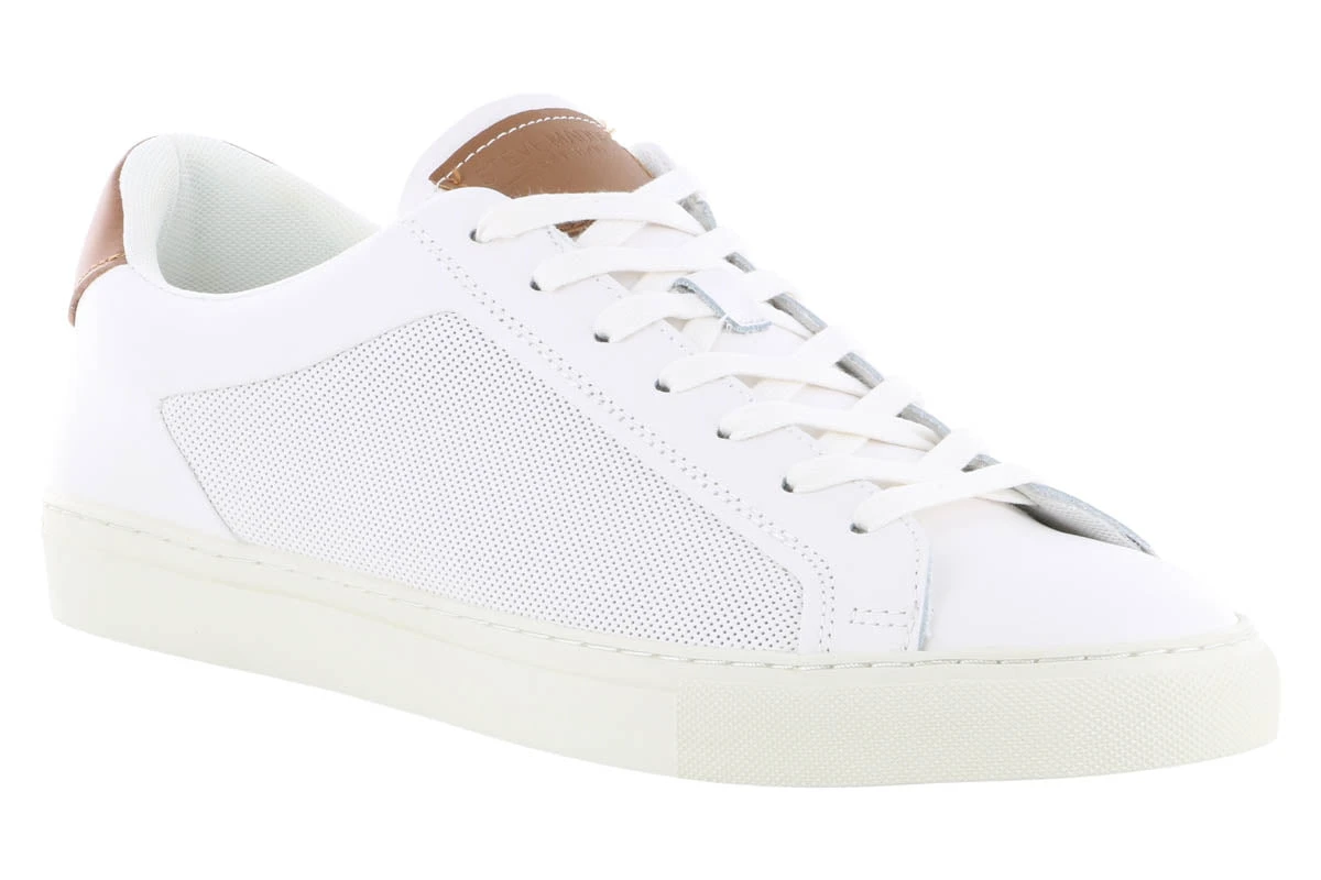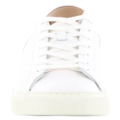 The Steve Madden Finneas is a white leather lace-up sneaker that allows you to walk in classic style and comfort all day. The leather upper is paired with a removable cushioned insole, man-made outsole, and lining.